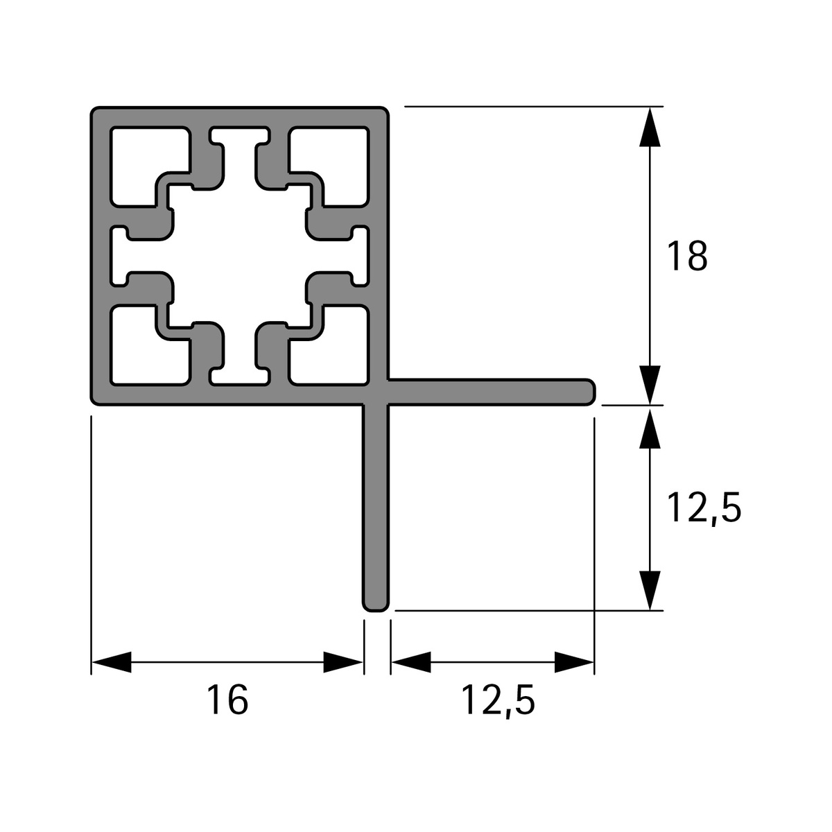 Елемент алюмінієвої каркасної системи Cadro, призначений для створення сучасних меблевих конструкцій: стелажів, шаф, вітрин чи перегородок.