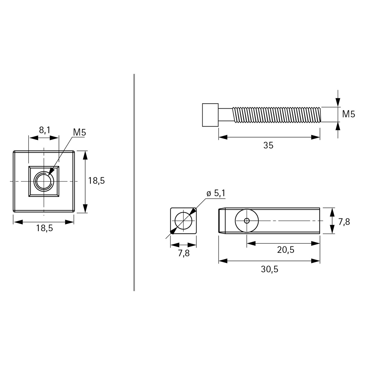 Адаптер із гвинтом M5 із циліндричною головкою забезпечує точне та міцне кріплення конструкції.