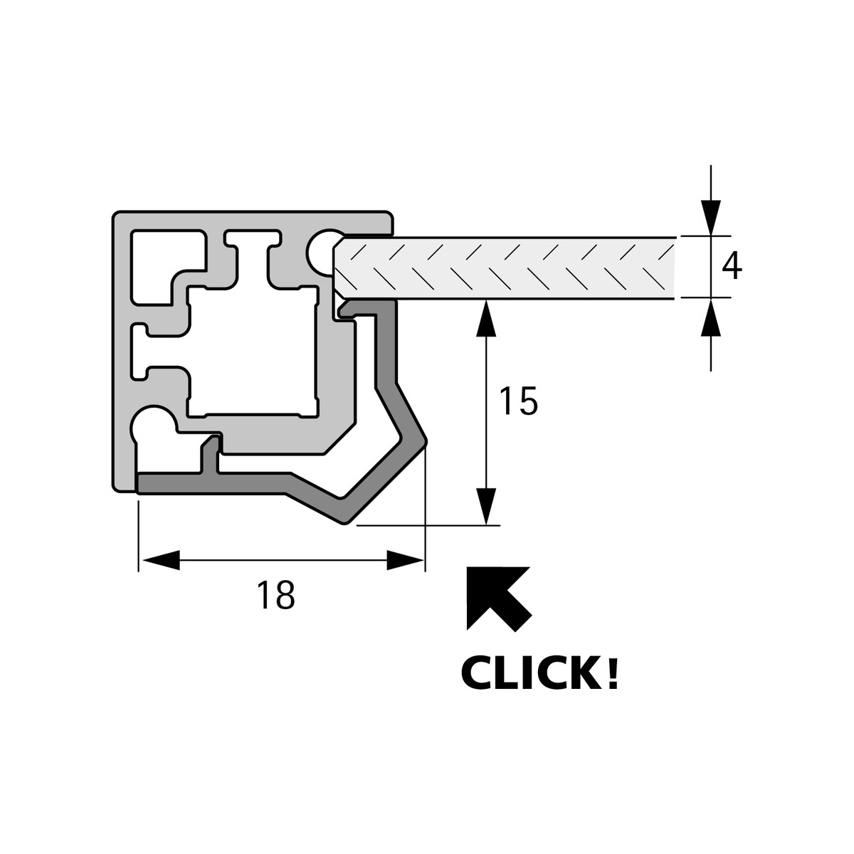 Пластиковий елемент для встановлення панелі зі скла товщиною 4 мм (загартоване скло) у поєднанні з підсвічуванням, коли інша сторона профілю закрита