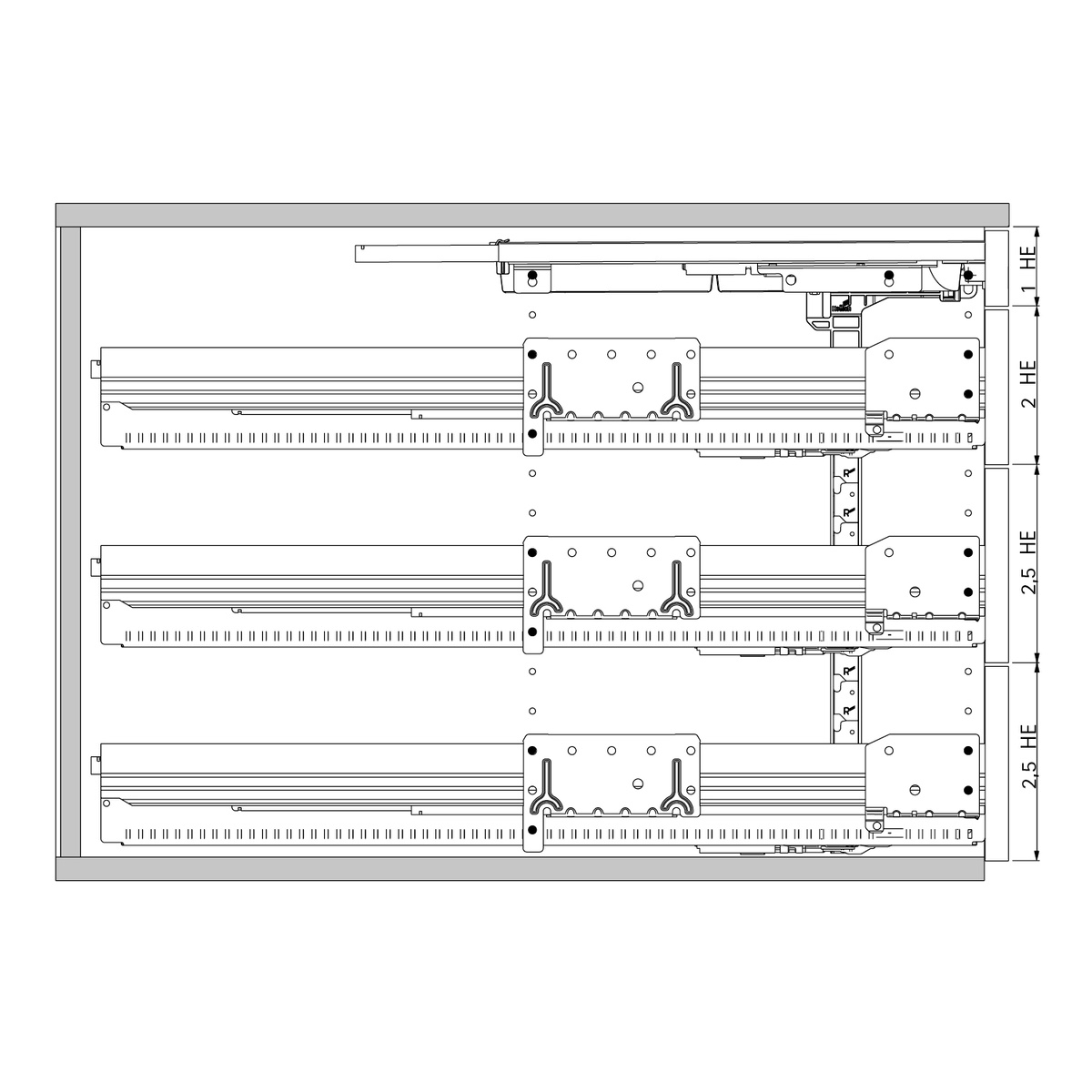 - 3 пари напрямних повного висування Quadro Duplex 25