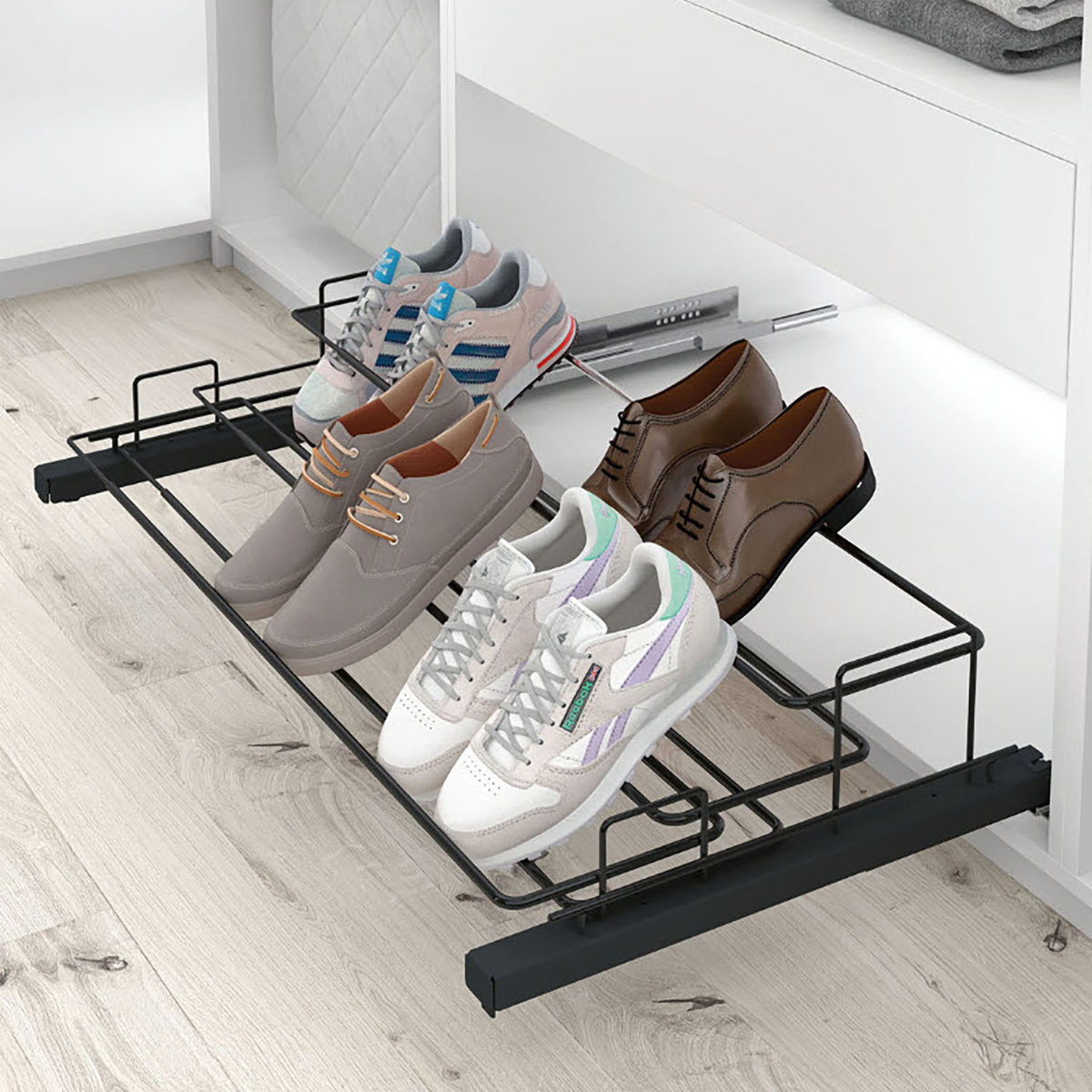 Выдвижная рама для обувной полки, регулируемая ширина, 640 – 1000, антрацит (9352745) Hettich