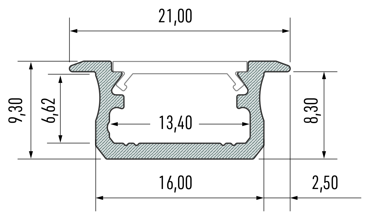 Профіль д/стрічки LED врізний (L=4150 мм), білий
