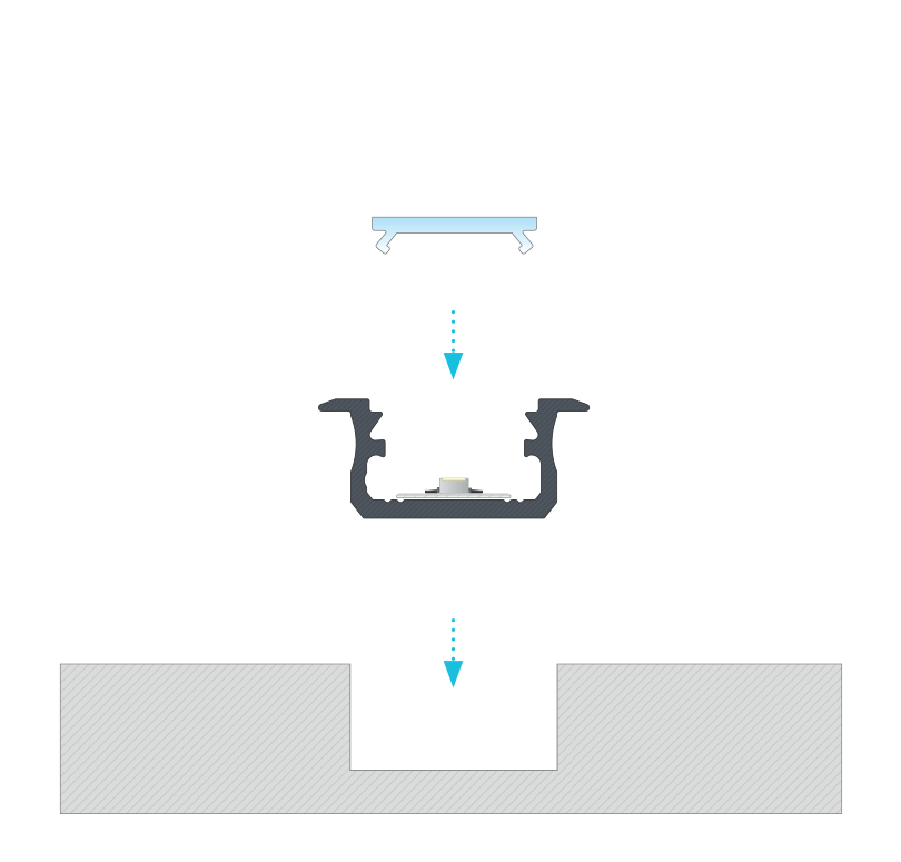 Профіль д/стрічки LED врізний (L=4150 мм), сірий
