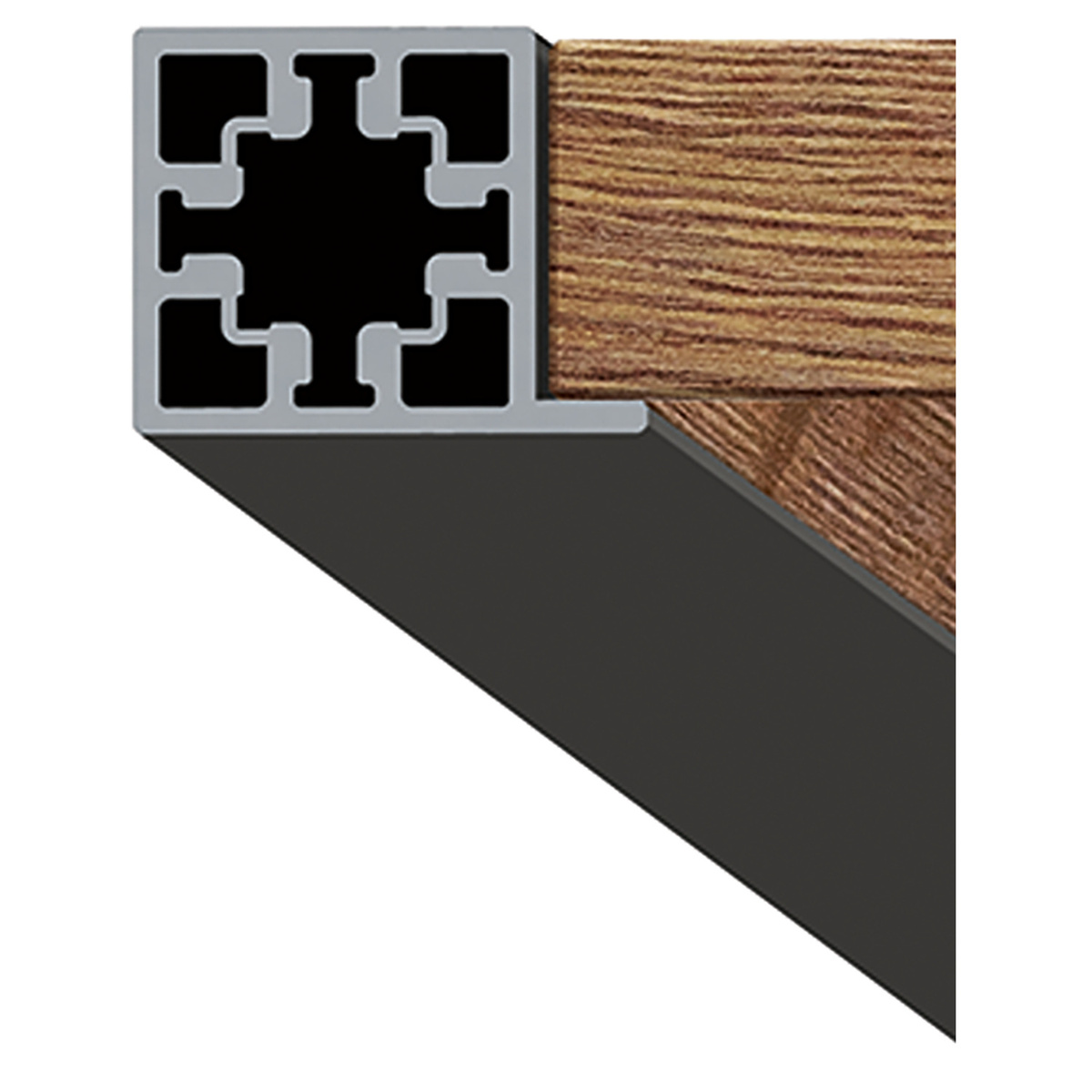 Елемент алюмінієвої каркасної системи Cadro, призначений для створення сучасних меблевих конструкцій: стелажів, шаф, вітрин чи перегородок.