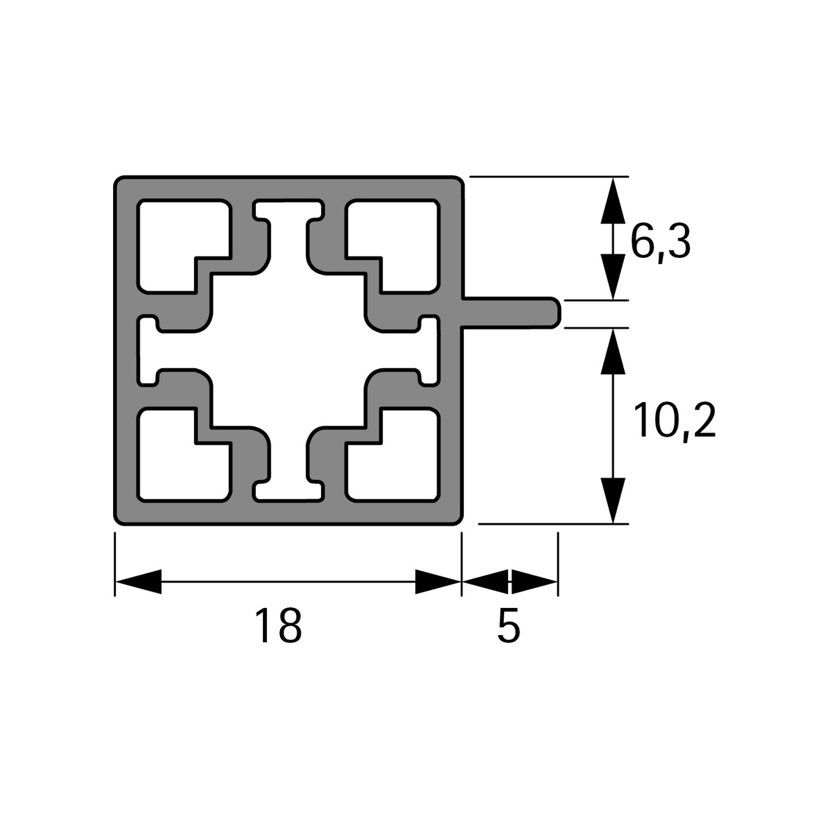Елемент алюмінієвої каркасної системи Cadro, призначений для створення сучасних меблевих конструкцій: стелажів, шаф, вітрин чи перегородок.