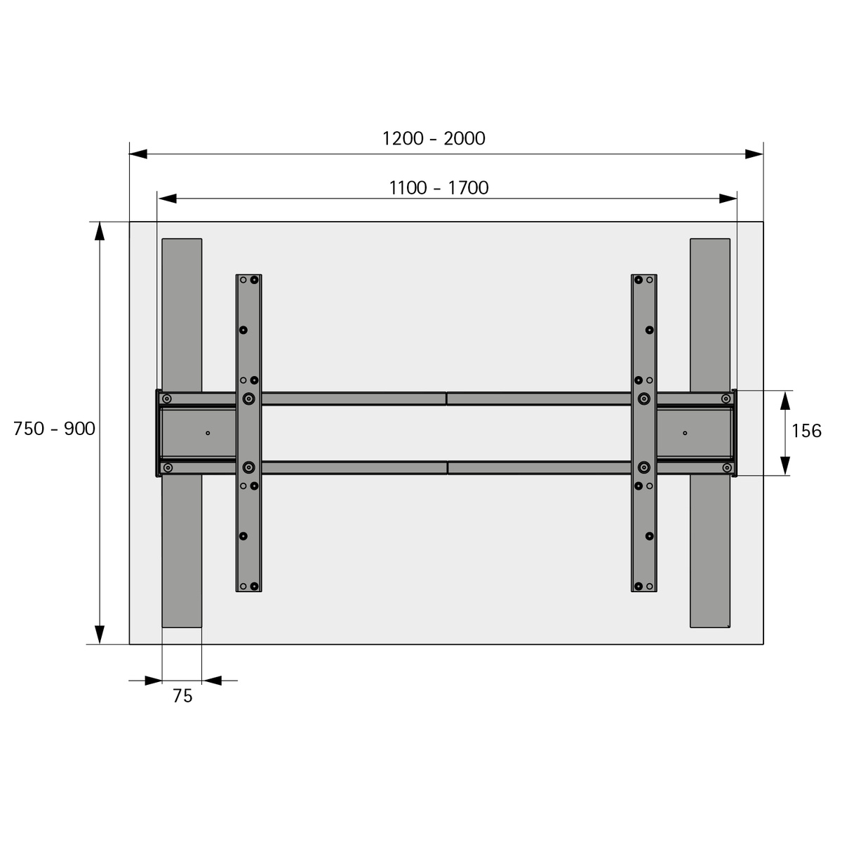 - ширина 1200 - 2000 мм - Регулювання по висоті від 700 - 1190 мм