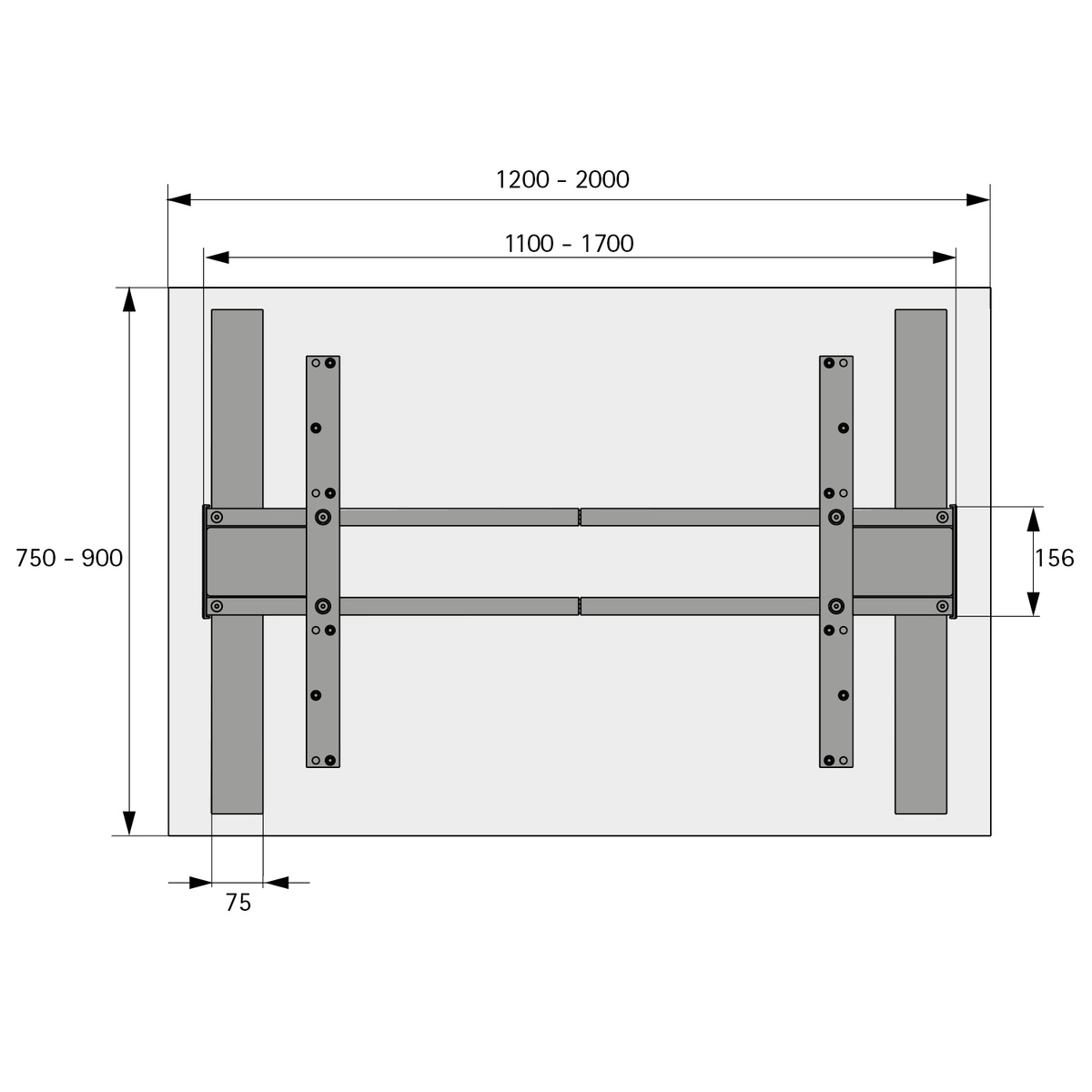 - ширина 1200 - 2000 мм - Регулювання по висоті від 625 - 1285 мм