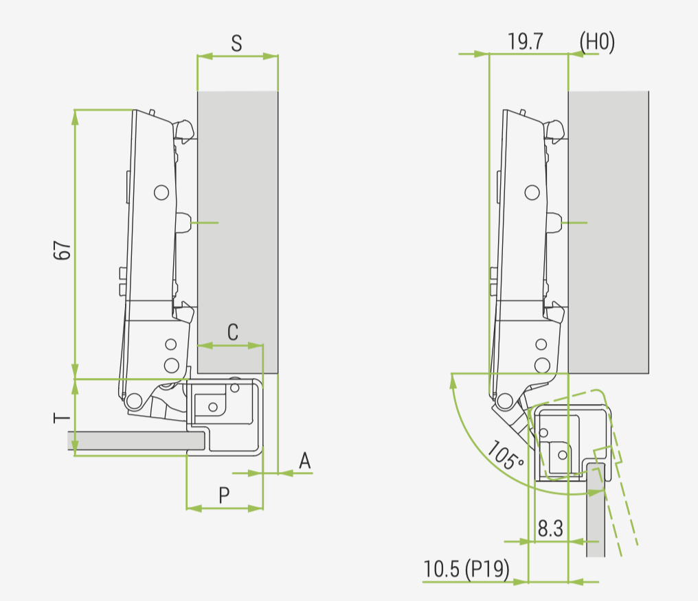 - монтажною планкою відповідного типу петлі та параметрів корпусу