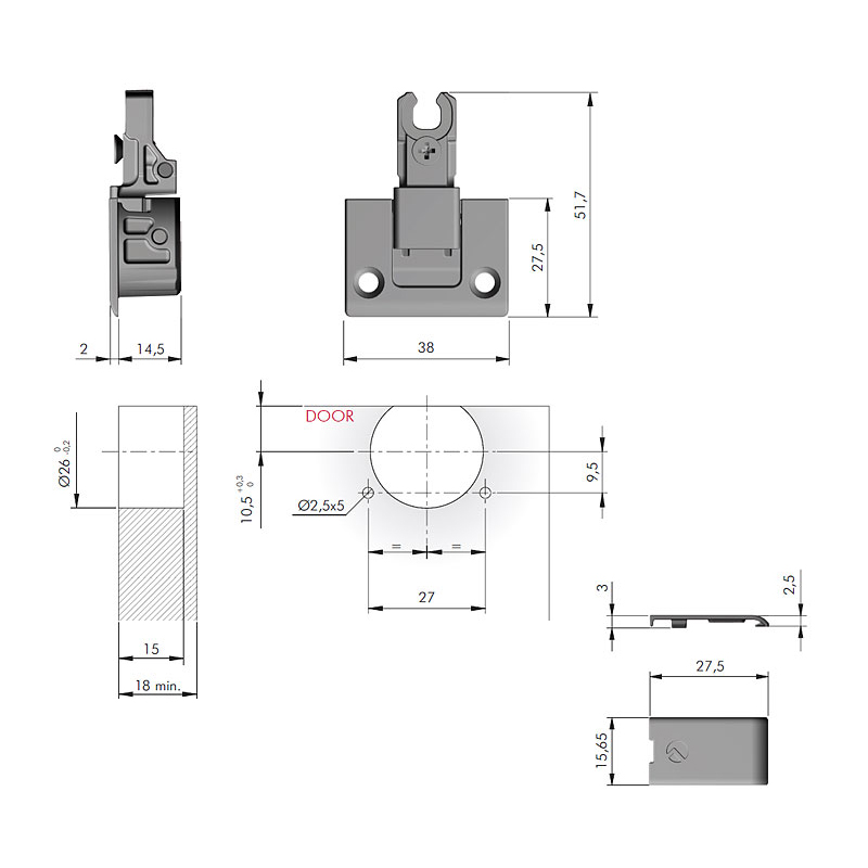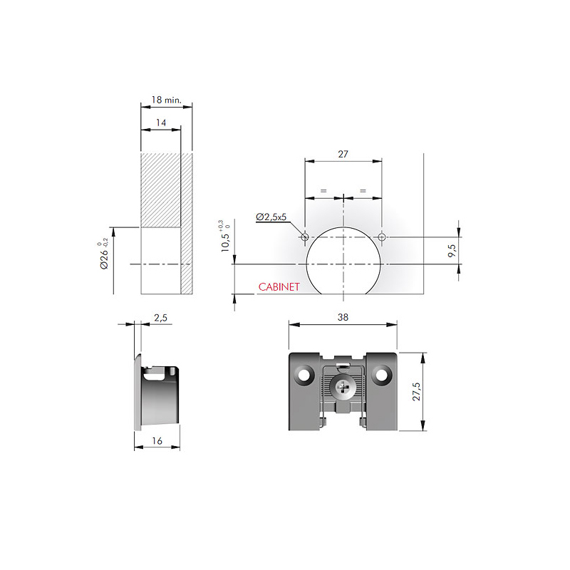 - однакові розміри свердління (26 мм) в дні та фасаді;
