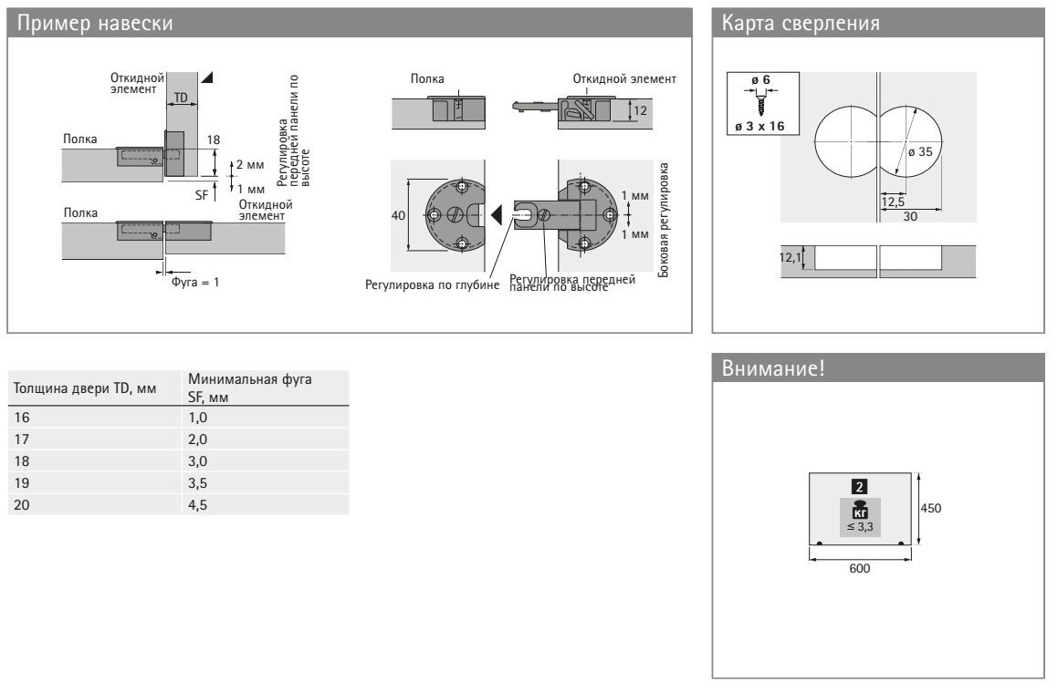 - Однакові розміри присади отворів в нижній панелі корпусу і на відкидній стулці