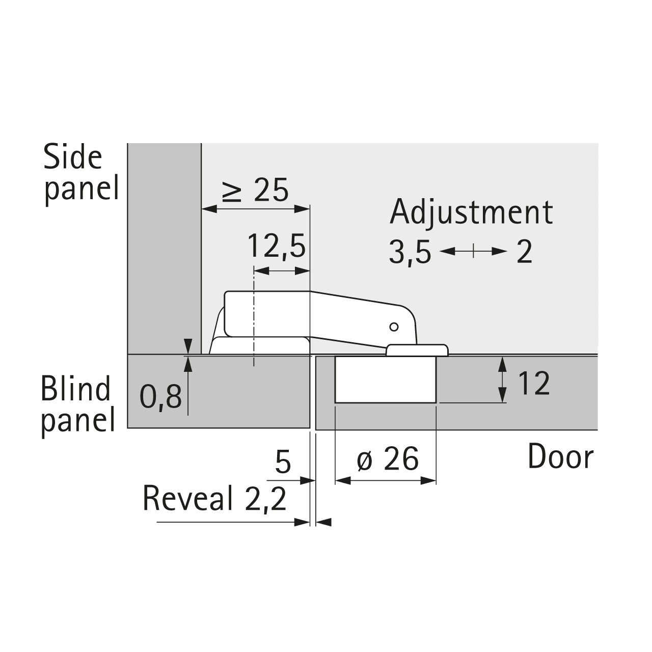 - Підходить для невеликих шаф з лицьовою фальш-панеллю