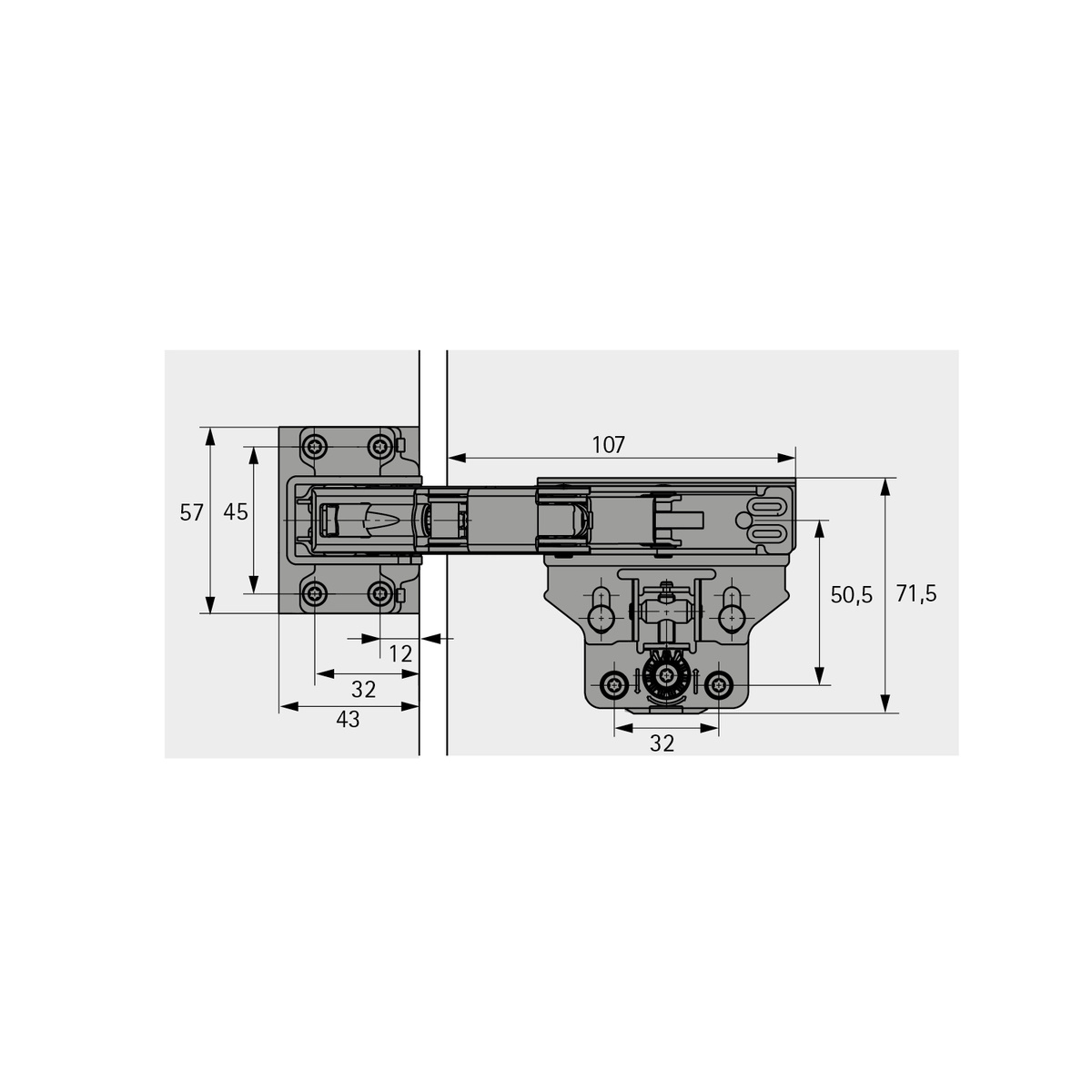 Допоміжна завіса Evisys без пружини, для корпусів вбудованих холодильників, кут 115° (9343488) Hettich