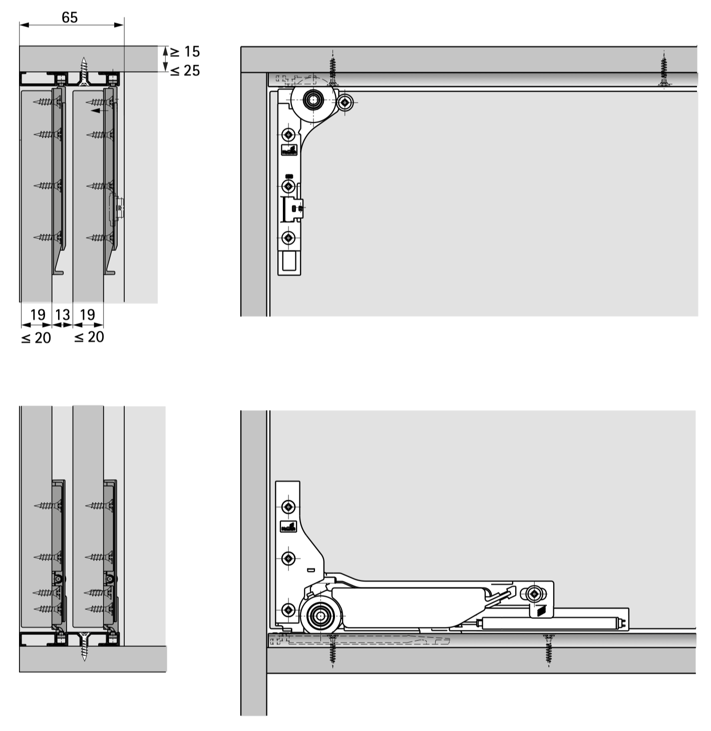 - Гвинти, що використовуються для кріплення у гвинтовому пазі, замовляються окремо.