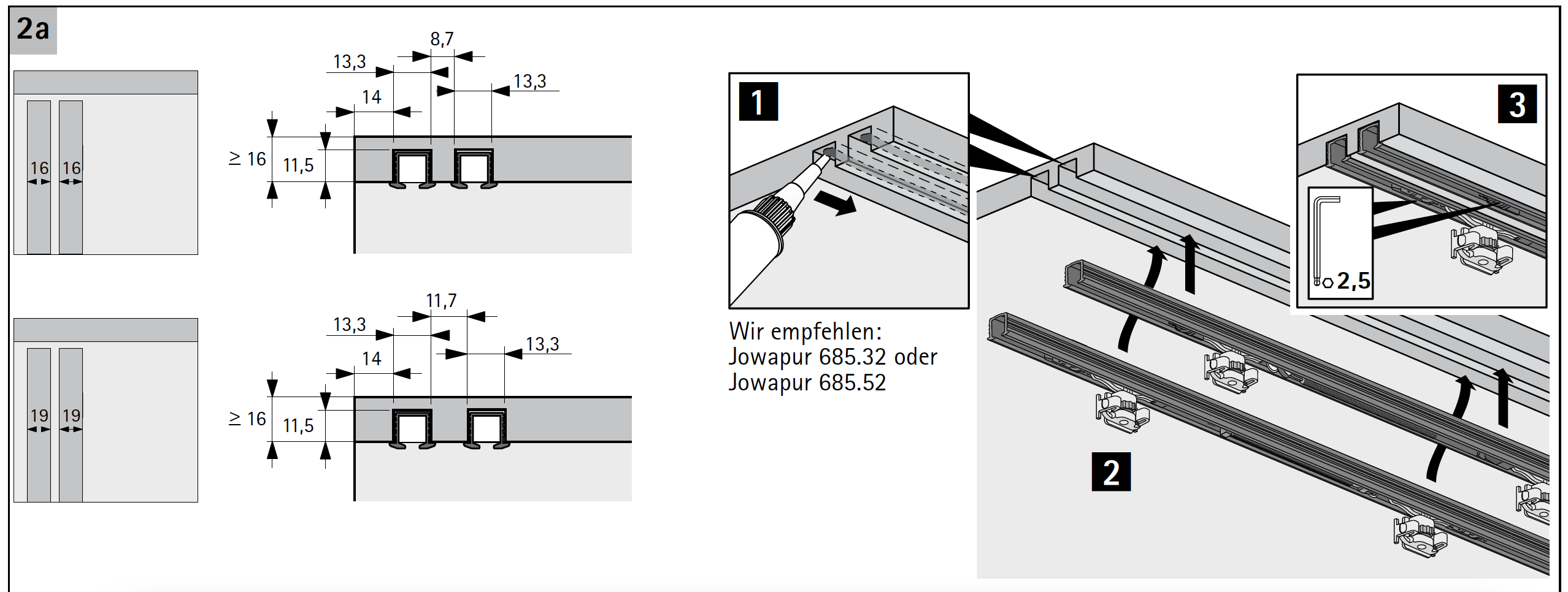 - В комплект входять всі верхні напрямні елементи для 2-дверної шафи