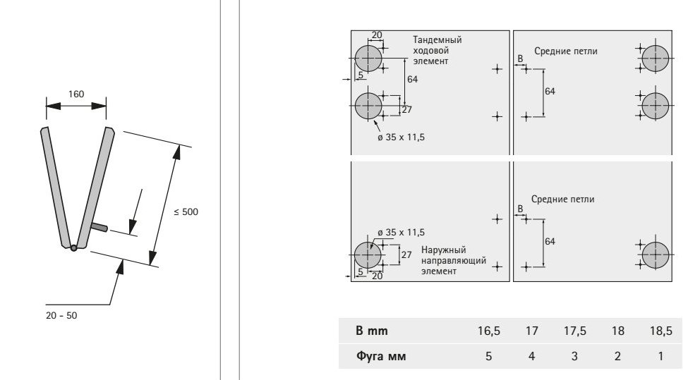 - Внутрішня ширина між бічними панелями не повинна перевищувати 800 мм. Конструкція верхньої панелі повинна бути розрахована таким чином, щоб прогинання верхньої панелі під навантаженням складених дверей становило не більше 1,5 мм.
