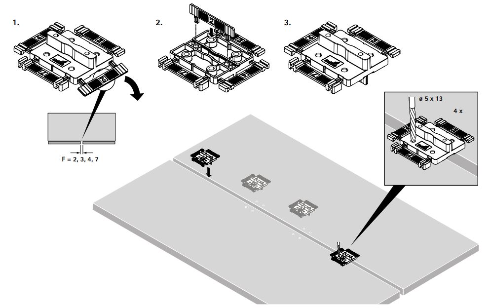 - Для простого визначення правильного положення свердління центральної петлі для швидкого монтажу