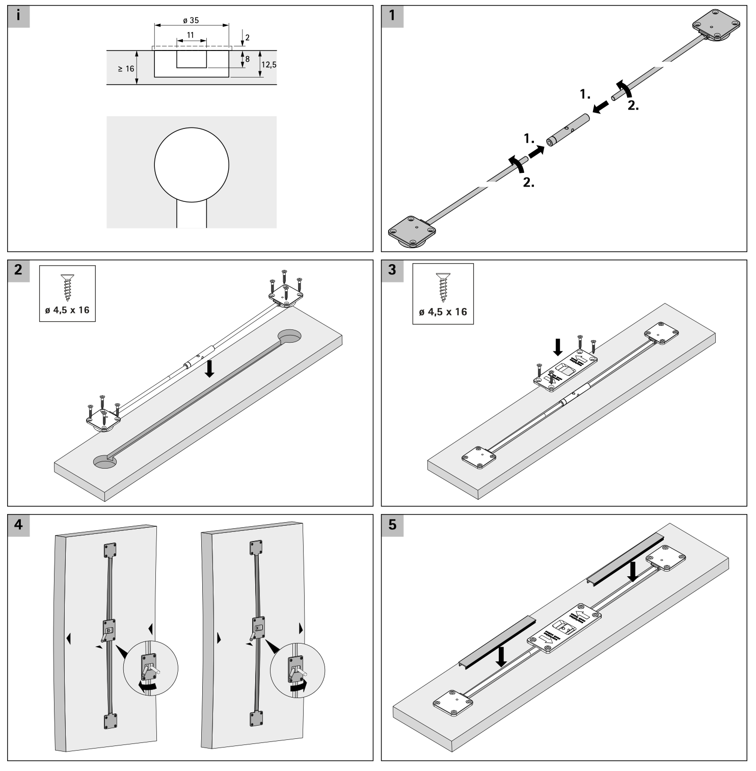 - Рекомендується встановлювати 2 стяжки-випрямлячі вертикально поруч із зовнішньою кромкою дверей Для великих широких дверей замість цього або додатково можна встановлювати 2 стяжки-випрямлячі горизонтально.