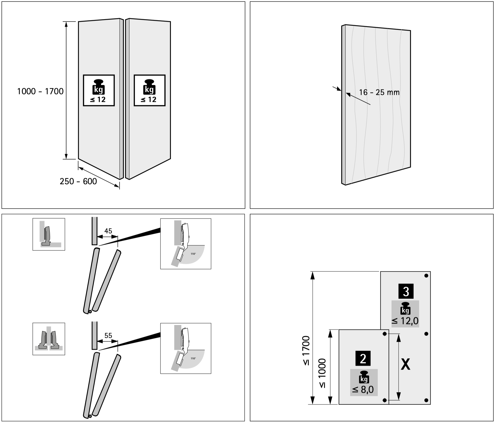 - 1 ходовий елемент, макс. 12 кг (на 1 стул двері) без функції самозачинення