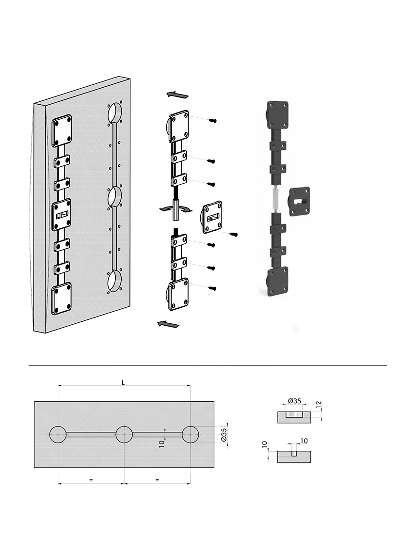 - Крім того, кожна штанга закріплюється в корпусі в отворах 35 мм.