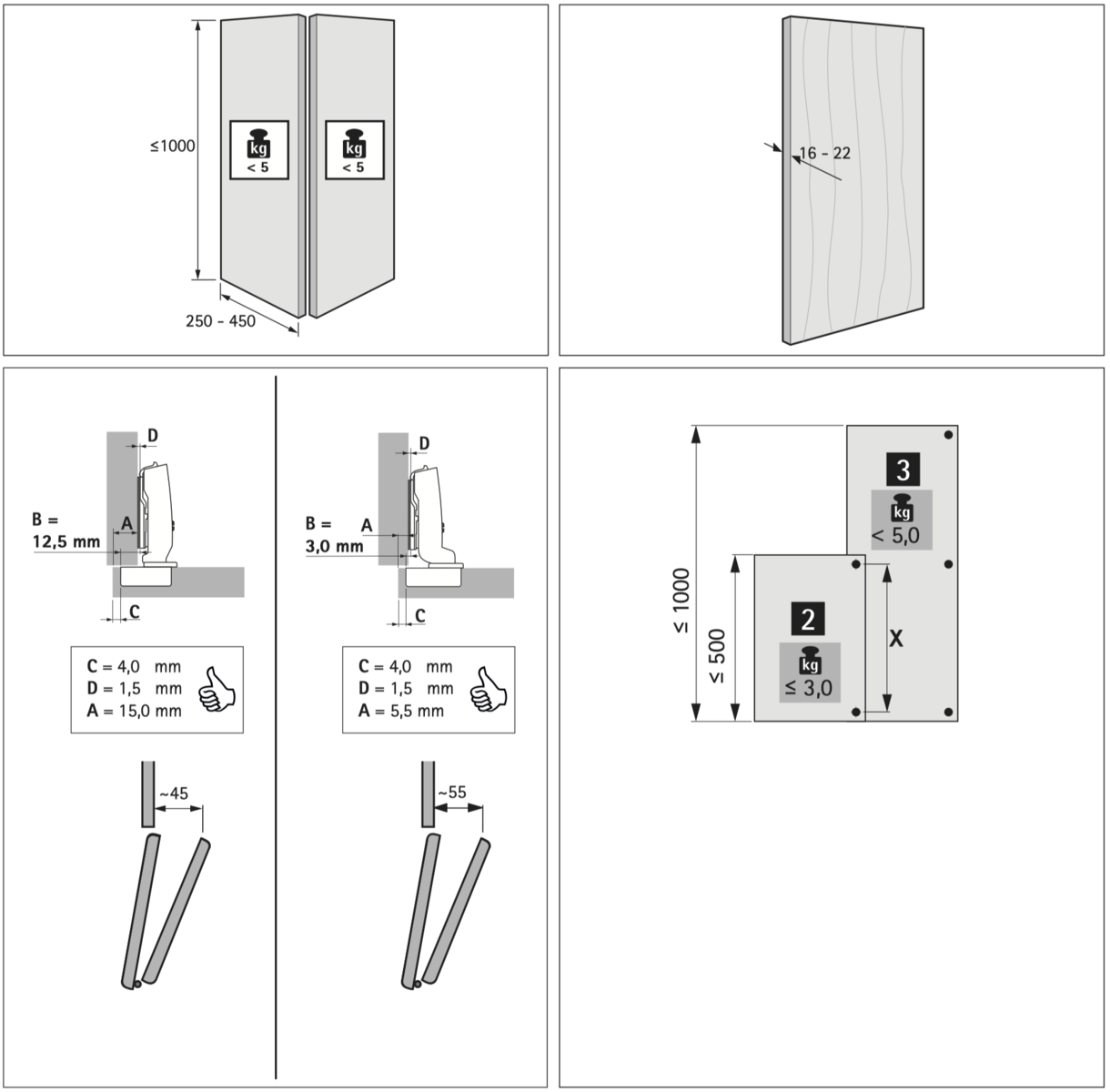 - Комплектація включає завіси Sensys 8645i, кут відкриття 110°