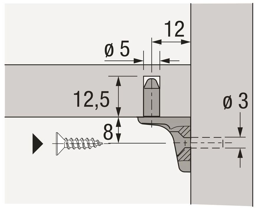 - Диаметр отверстия 3 мм для винтов с потайной головкой ø 4 мм