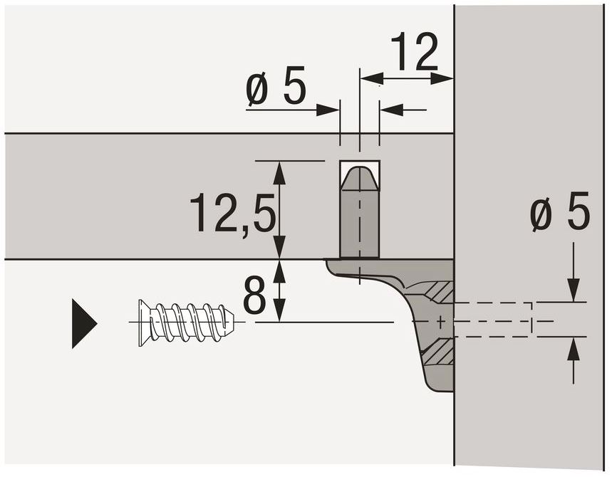- Диаметр отверстия 5 мм для винтов с потайной головкой, ø 6,3 мм