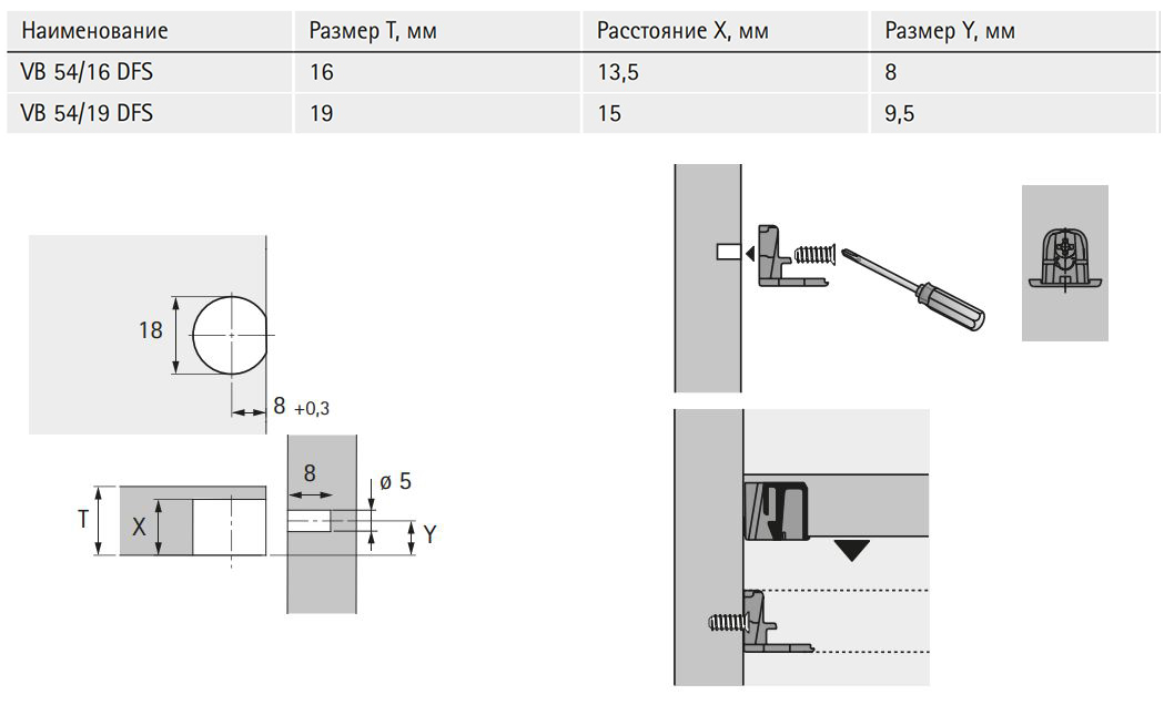 - Завдяки кромці стяжки, що виступає, завжди гарантується правильне положення корпусу, навіть при занадто глибоко просвердлених отворах