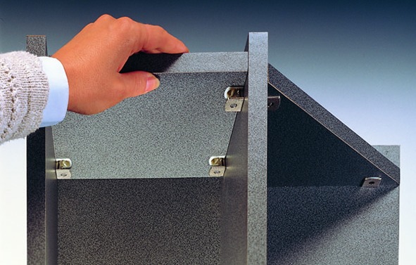 - Простий демонтаж полиць завдяки гнучкому фіксатору в корпусі стяжки завжди можливий подальший повторний монтаж