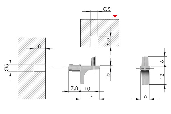 Полицетримач K-Line d=5мм д/ДСП два штифта, нікель (10208050YA)