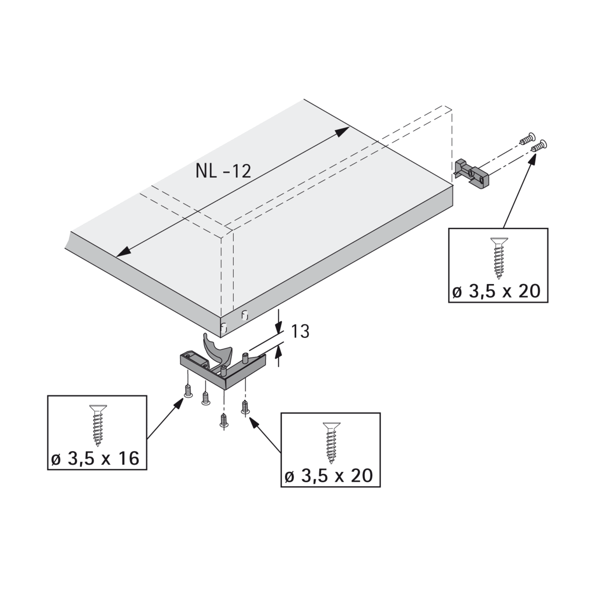- Длина выдвижной полки уменьшена на 12 мм (NL - 12 мм)