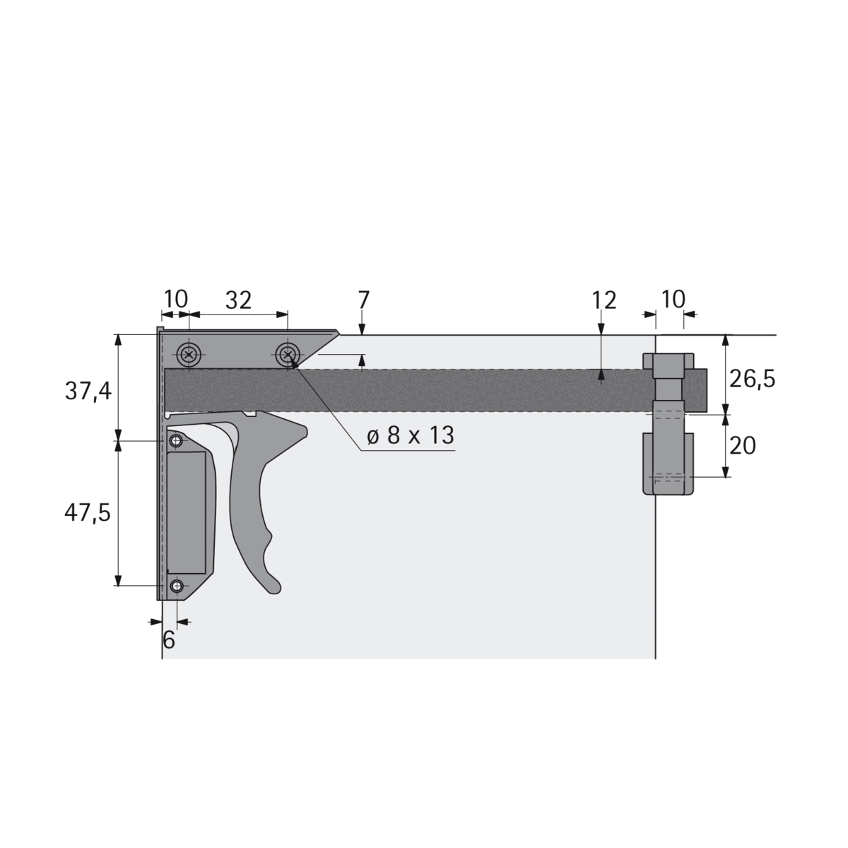 - Для надежного соединения направляющих Quadro и выдвижных полок (или подобных конструкций ящиков)
