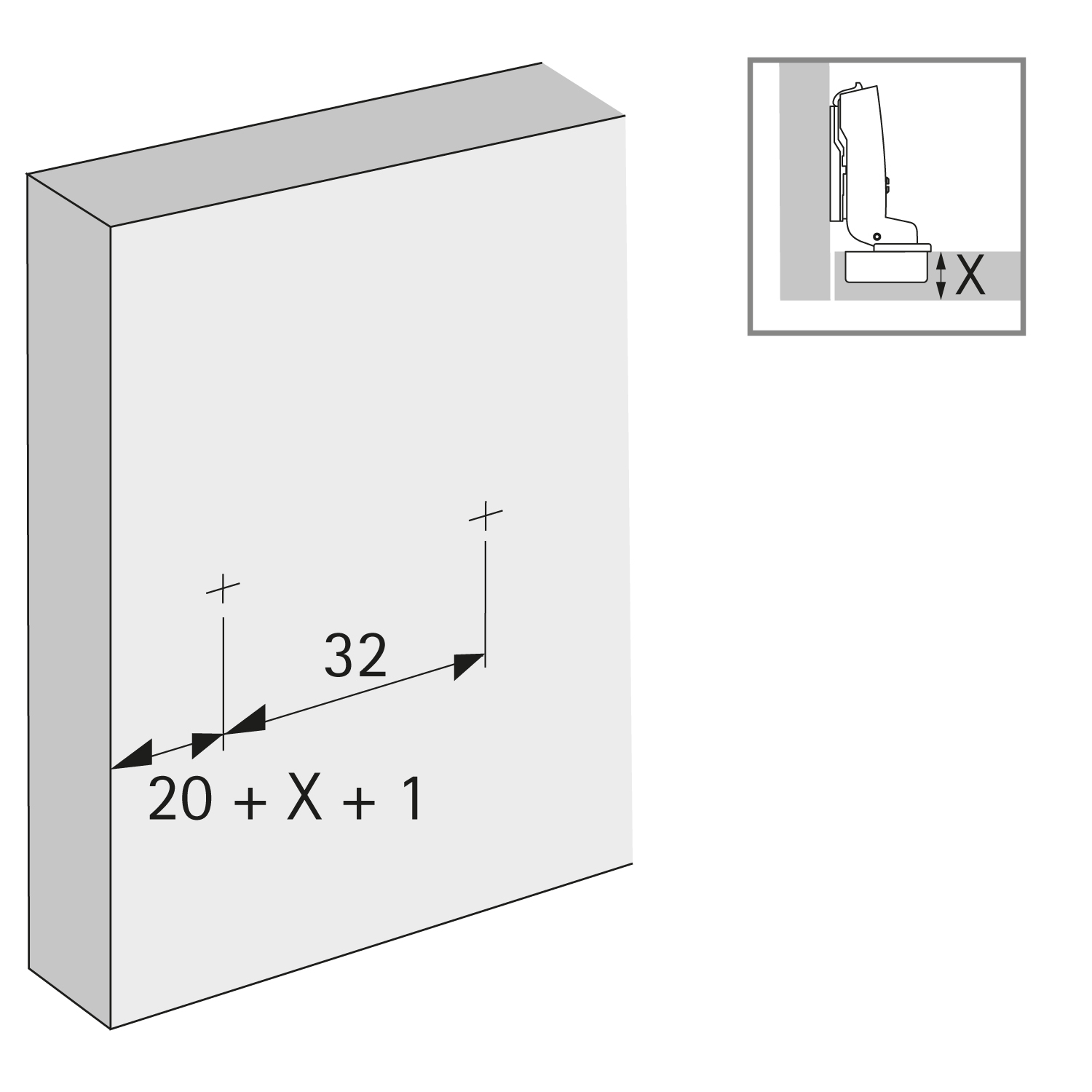 - Для Ряд отверстий20 x 32 мм