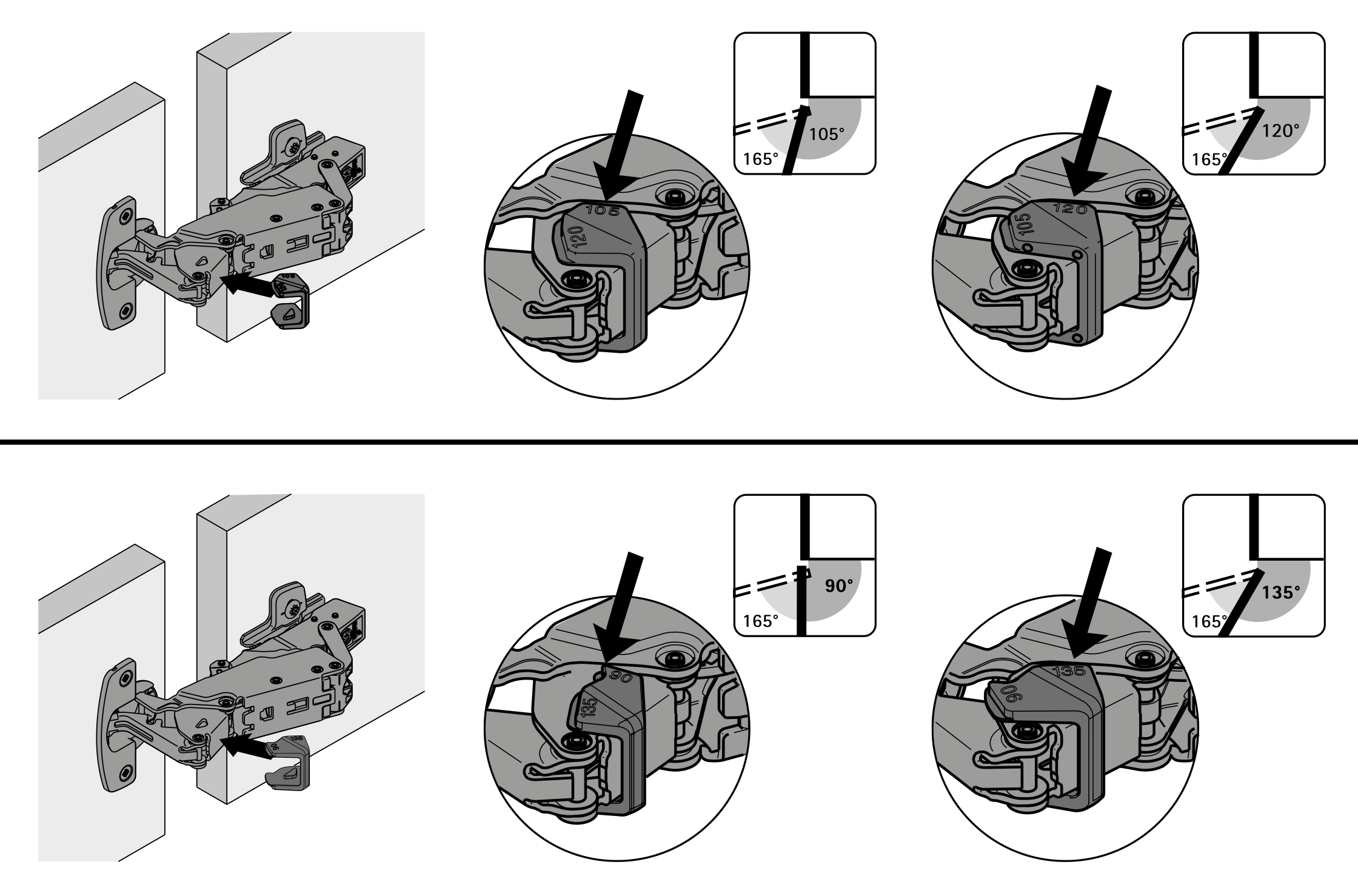 - Для уменьшения угла открывания дверей шкафов с выступающими элементами
