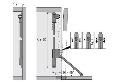 - Петли для откидных элементов монтируются к нижней части створки (заказываются отдельно)