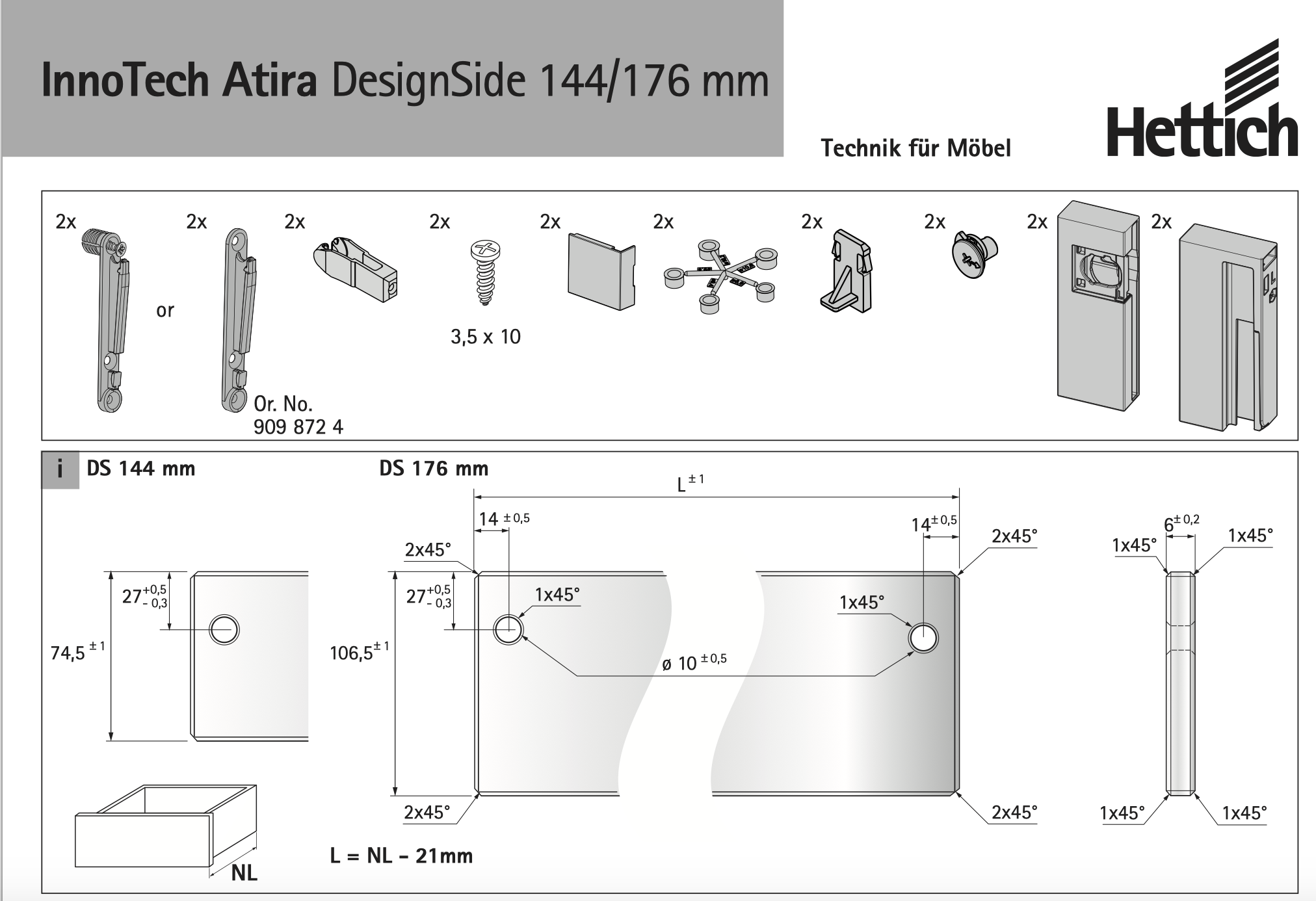 - Для комбинирования боковины ящика с надставкой стекло 6 мм.
